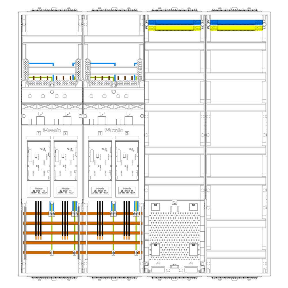 F-Tronic Zählerschrank eHZ 4 Zählerplätze, 2 Verteilerfelder, APZ-Platz, Höhe 1100mm