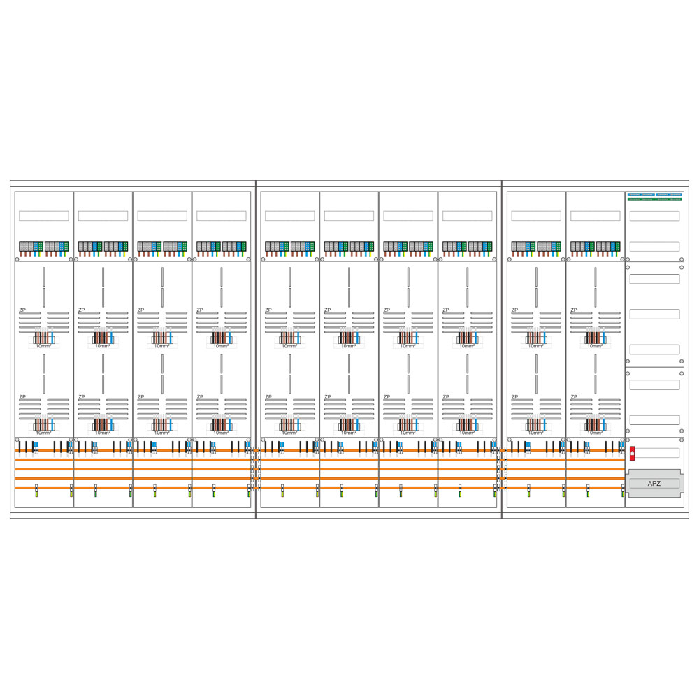 Zählerschrank 3.HZ 20 Zählerplätze, Verteiler, APZ | 1400mm | SCHIEGL