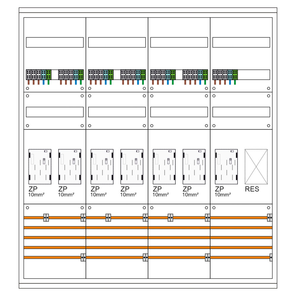 - Zählerfeld: Verdrahtung H07V-K 10 mm²